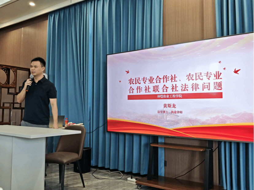 会议上,科技小院成员、仲恺农业工程学院马克思主义学院博士后黄斯龙为全体社员带来了一场主题为《合作社法务知识讲解》的专题讲座,结合农民专业合作社运营中的常见法律风险,讲解了合同签订、劳务用工、股权纠纷等关键问题,为合作社的规范、健康运行提供了极具价值的法律知识。这一精准滴灌式的服务,正是科技小院宗旨的生动体现。