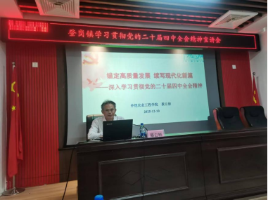 近日,由广州市社科联与仲恺农业工程学院联合主办的党的二十届四中全会精神宣讲会暨“广为人知”社科学堂第八讲在揭阳市登岗镇开讲。宣讲会由该镇党委副书记李映林主持,镇、村两级全体党员干部齐聚一堂,共同聆听全会精神解读,凝聚乡村振兴奋进力量。