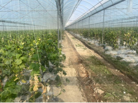图二、图四:最后一茬黄瓜和旁边已经种下玉米的大棚