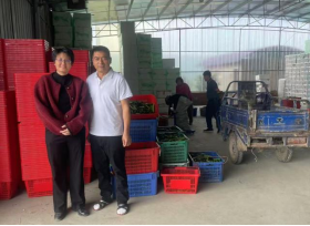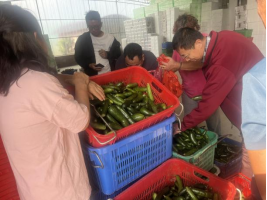 图一、图二:在黄瓜装车大棚内,工作人员正在筛选刚下树的黄瓜