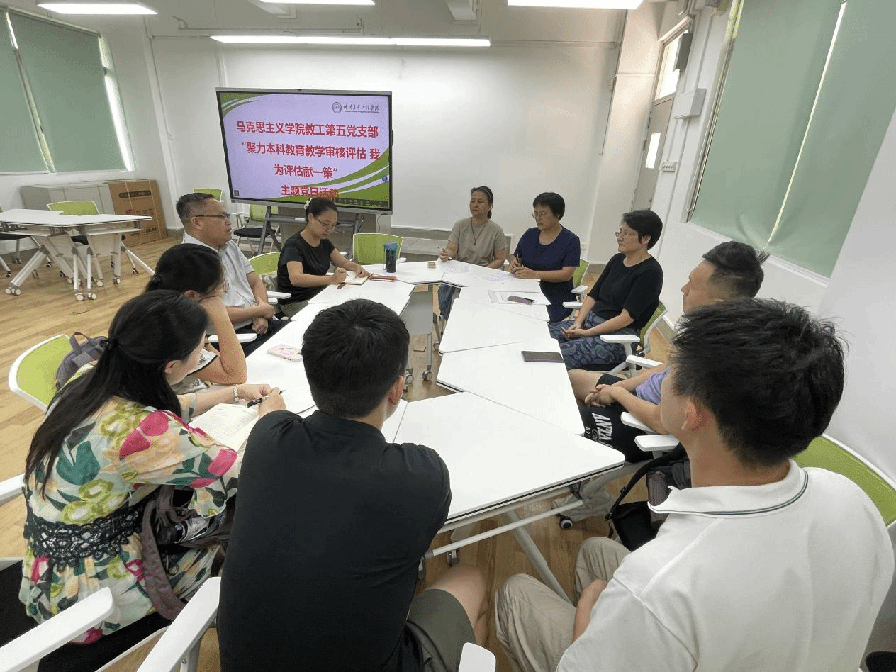 10月16日下午,马克思主义学院教工第五党支部在海珠校区教学楼704开展“聚力本科教育教学审核评估 我为评估献一策”主题党日活动。学院副院长李增添同志参加活动,党支部书记许二梅同志主持,全体党员参加。